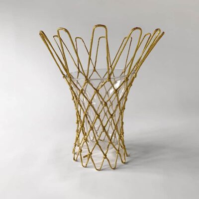 The hyperboloid silhouette comes naturally from the net, a plastic liner makes for easy cleaning. Dunk your trash. Live with more thoughtful design.