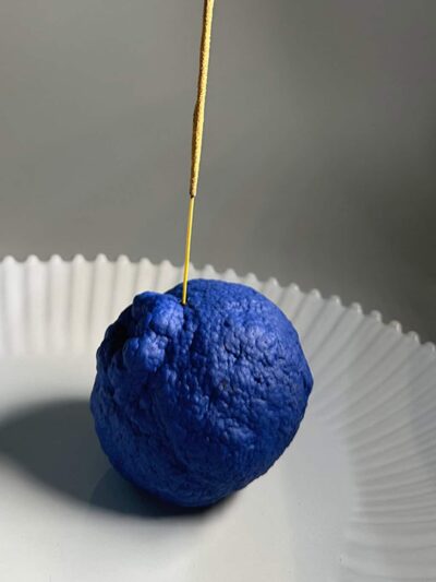 A matte blue orange to hold your incense.