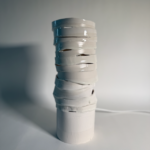 Harry developed these fuse vases to take advantage of the glazing process and highlight its beauty. A simple cylinder is cast and roughly cut into many rings. The focus is on the glaze, so the ceramic is left very raw, no care is taken to clean up the parts, remove parting lines, or cut regular rings.