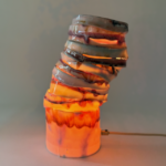 Fuse Lamps are based on the same 5.5″ diameter cylinder that we use for the Jumbo Vases. They are cut and assembled randomly, and they slump and deform in the kiln, so they take on larger forms.